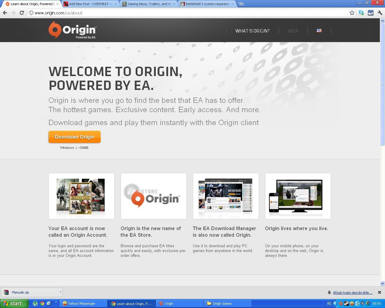 Dacă vi se pare totul ok, trebuie să vă luaţi clientul de distribuţie digitală a celor de la EA , adică Origin (seamană perfect cu Steam). Acesta se poate descărca de la http://www.origin.com/us/about.