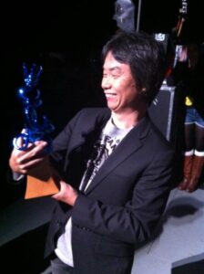 Publicul prezent la eveniment l-a primit pe Miyamoto aşa cum se cuvine, ridicându-se în picioare şi oferind momente lungi de aplauze.