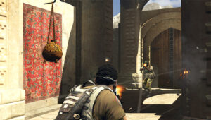 În ceea ce priveşte trasul cu arma, jocul are un pic de aim assist (nu poate fi dezactivat) care personal mi s-a părut că face experienţa mai plăcută, de asemenea te poţi uita prin cătare/lunetă, poţi lovi inamicii cu patul armei (melee attack) şi, de asemenea te poţi ascunde după o grămadă de obiecte, căci avem la dispoziţie un sistem de cover destul de bine pus la punct. Cu excepţia momentului când vrei să faci un atac melee din cover, chestie care nu funcţionează şi mi-a cauzat câteva morţi nemeritate.