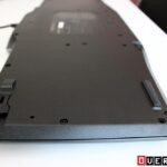 Pe partea dorsală a tastaturii (sub tastatură) găsim două picioruşe de plastic retractabile pentru înclinarea tastaturii spre utilizator, dar şi două picioruşe fixe de cauciuc, pentru sporirea aderenţei. De asemenea, pentru mai mult confort în timpul scrisului, tastatura vine şi cu un palm rest detaşabil şi destul de lat (nu l-am fotografiat din păcate, dar credeţi-mă pe cuvânt J), cu o suprafaţă hidrofobă ce previne lipirea mâinilor transpirate de el.