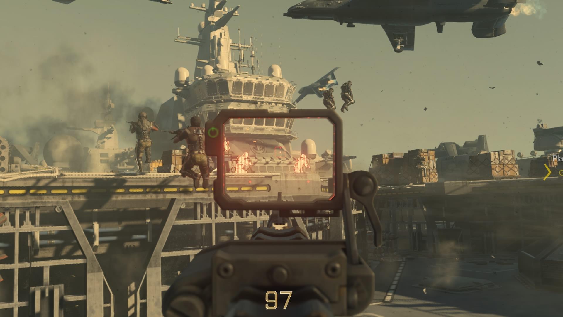 Sau motivul pentru care ți-ai luat acest joc. Nu este un secret că jocurile din seria Call Of Duty sunt adesea achiziționate pentru multiplayer-ul frenetic, campania solo fiind în viziunea unora doar un tutorial pentru a familiariza jucătorul cu mecanicile noi. Advanced Warfare nu se dezice și vine cu un multiplayer antrenant și plăcut. Modurile sunt aceleași că în titlurile precedente, iar mecanica de level up se face pe bază de XP ca și până acum. Avem nelipsitele perks, wildcards și bonusuri (turelă, asalt aerian etc), iar cea mai plăcută adiție o reprezintă abilitatea specială a exo-scheletului (scut, invizibilitate etc).