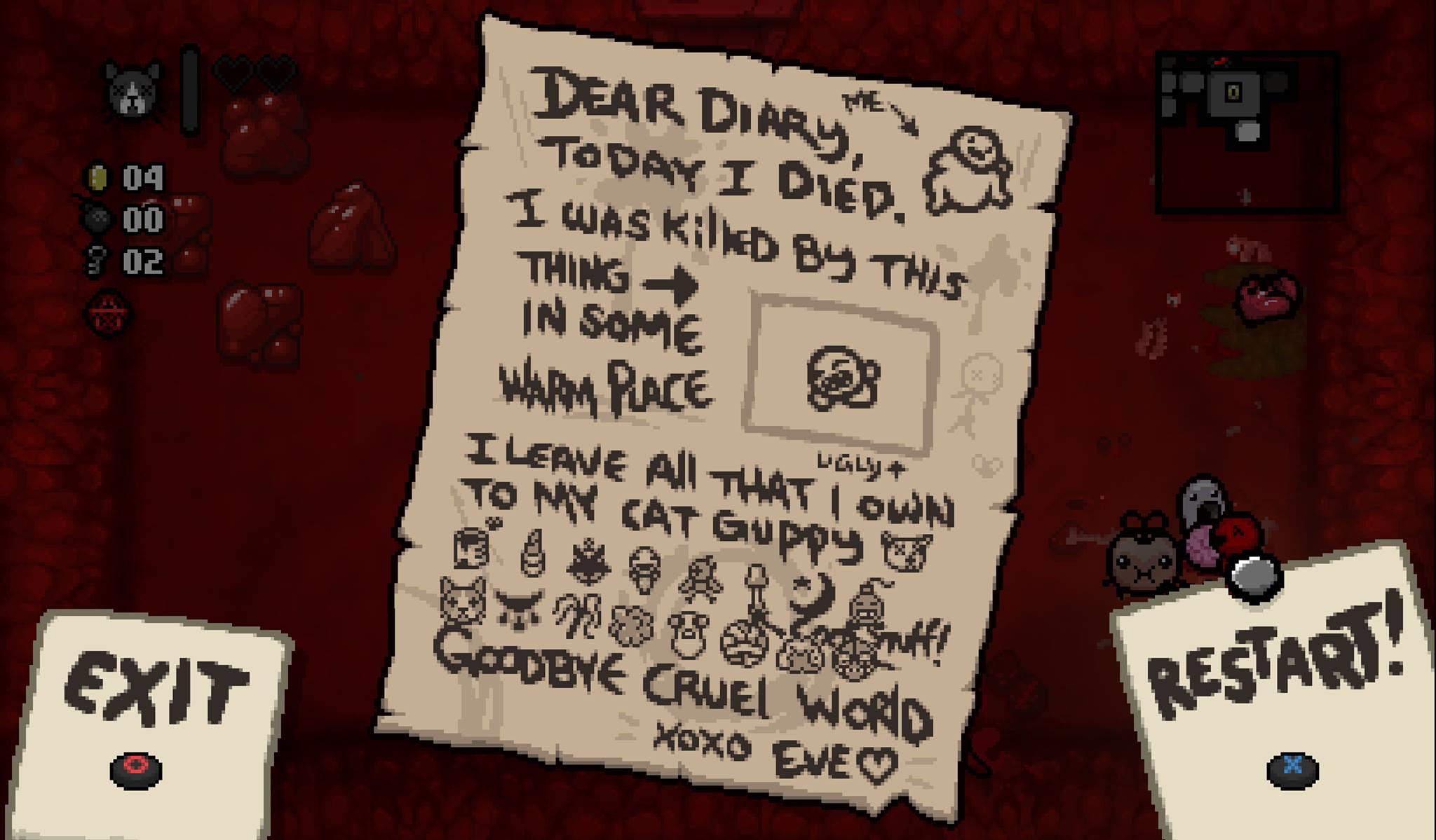 Ce e Binding of Isaac însă? În caz că sunteți mai puțin obsedați de indie-uri decât mine o să încerc să îl descriu în cât mai puține cuvinte. Binding of Isaac este un roguelike twin-stick/bullet-hell cu o tematică biblică și un soundtrack bitchin’ de Danny Baranowsky. Pe lângă biblie jocul se mai inspiră din Legend Of Zelda, meme-uri internetice și din mintea bolnavă a creatorului său.