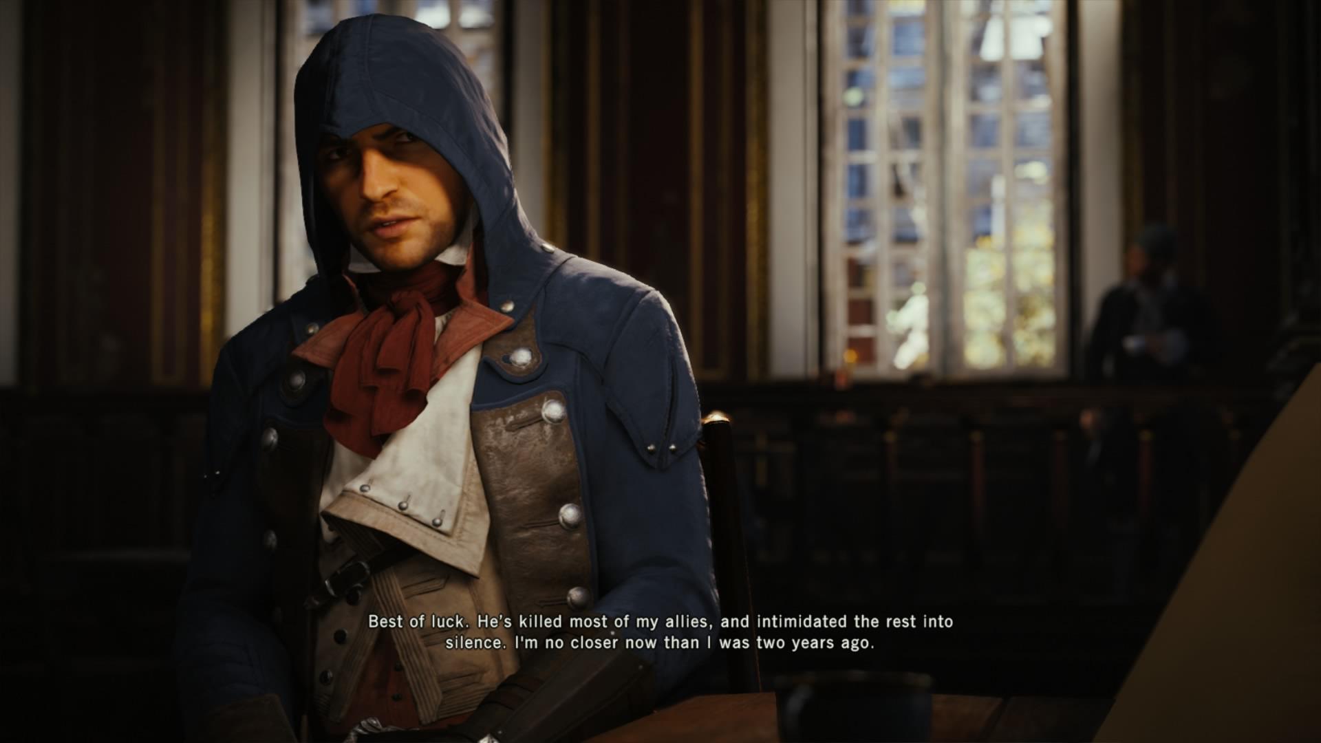 Deși per total povestea jocului mi-a plăcut, am găsit o asemănare destul de mare cu cel de-al doilea titlu al seriei. Clișeul băiatului șarmant care rămâne fără familie și mânat de răzbunare se alătura frăției asasinilor este prezent din plin în Unity, incipitul fiind aproape identic cu cel din Assassin’s Creed 2. Nu de puține ori era să îl confund pe Arno cu Ezio din Florența, cei doi având cam aceleași trăsături definitorii: carismă, curaj, naivitate și lista poate continua. Cu excepția accentului, cei doi ucigași de templieri seamănă destul de mult.