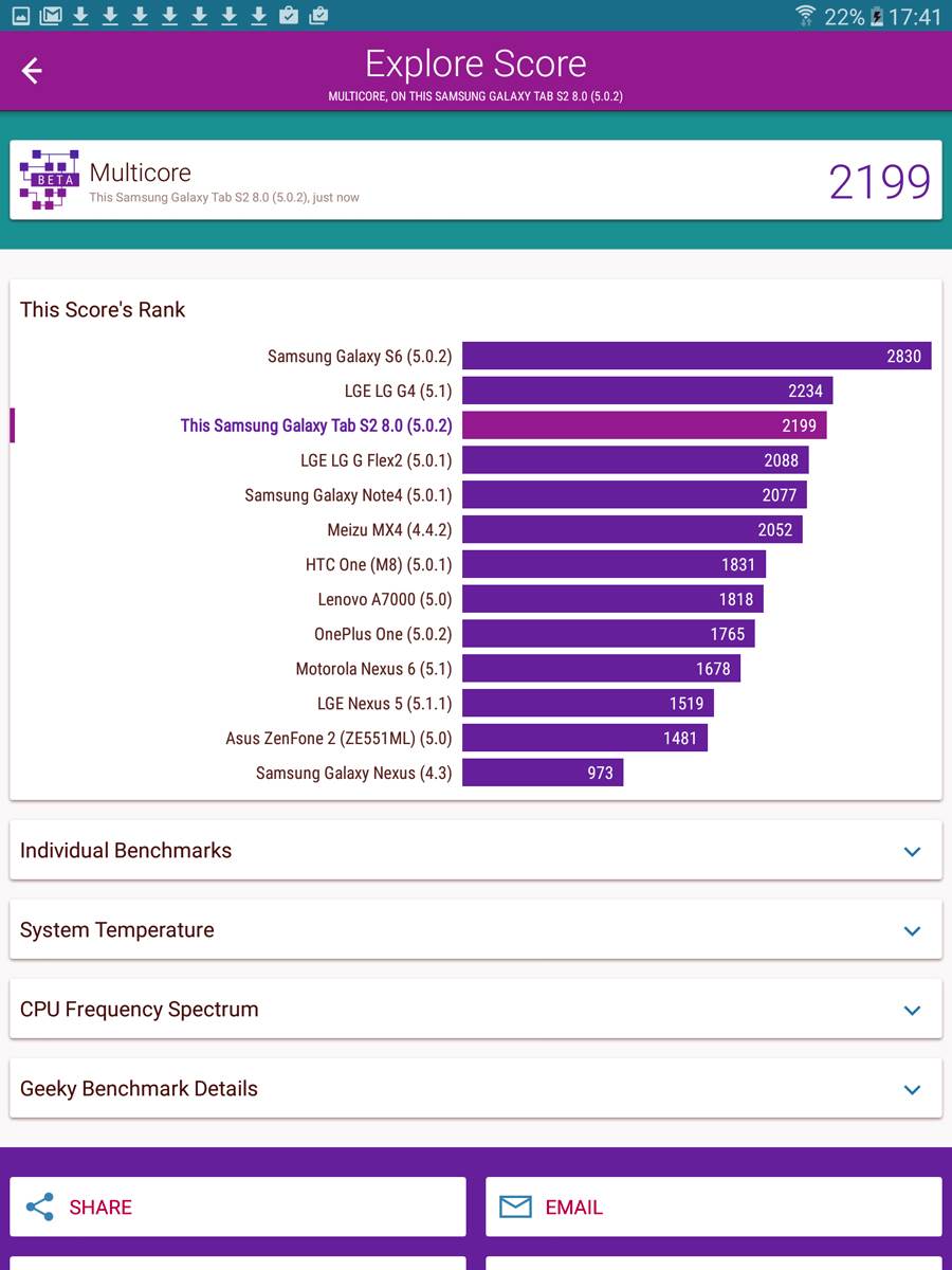 Puteţi consulta puţin mai jos şi testele pe care le-am rulat pe această tabletă, însă cred că este de ajuns să vă spun că, din punctul meu e vedere, Galaxy Tab S2 este cea mai bună alegere în materie de tablete cu Android în acest moment.