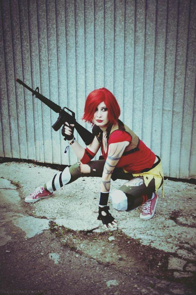 Istoria din spatele ultimului meu cosplay, Lilith the Firehawk din Borderlands 2, este că într-o zi mi-am întrebat prietenii de pe Facebook ce personaj din seria Borderlands să fac cosplay. Mulți mi-au zis Maya sau Mad Moxxi, dar nu prea simțeam o conexiune cu ele la vremea respectivă, chiar dacă le ador ca și personaje. O prietenă mi-a zis că mi s-ar potrivi Lilith de minune, so I said why not. Costumul nu a fost extrem de greu de făcut, mai multe bătăi de cap mi-a dat stilizarea perucii și aplicarea tatuajelor decât costumul în sine. Am folosit craft foam pentru knee cap și leg armors, din moment ce nu mă ating de worbla, sunt astmatică și am auzit că materialul nu e non-alergic deci nu mă risc cu el. Am dat cu gesso peste craft foam ca să întărească materialul, după am dat 2 straturi de vopsea acrilică metalizată. Tricoul și pantalonii au fost părțile mele preferate pentru că am ciopârțit materialele, și a fost o activitate relaxantă.