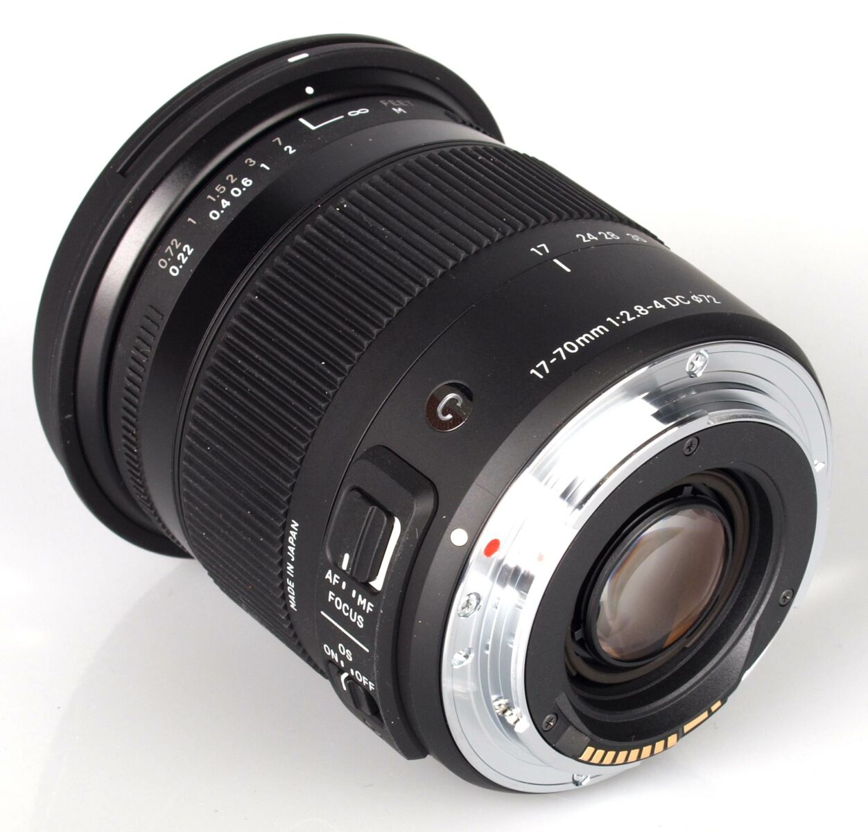 17-70mm ( 27.2 – 112mm in format 35mm) |