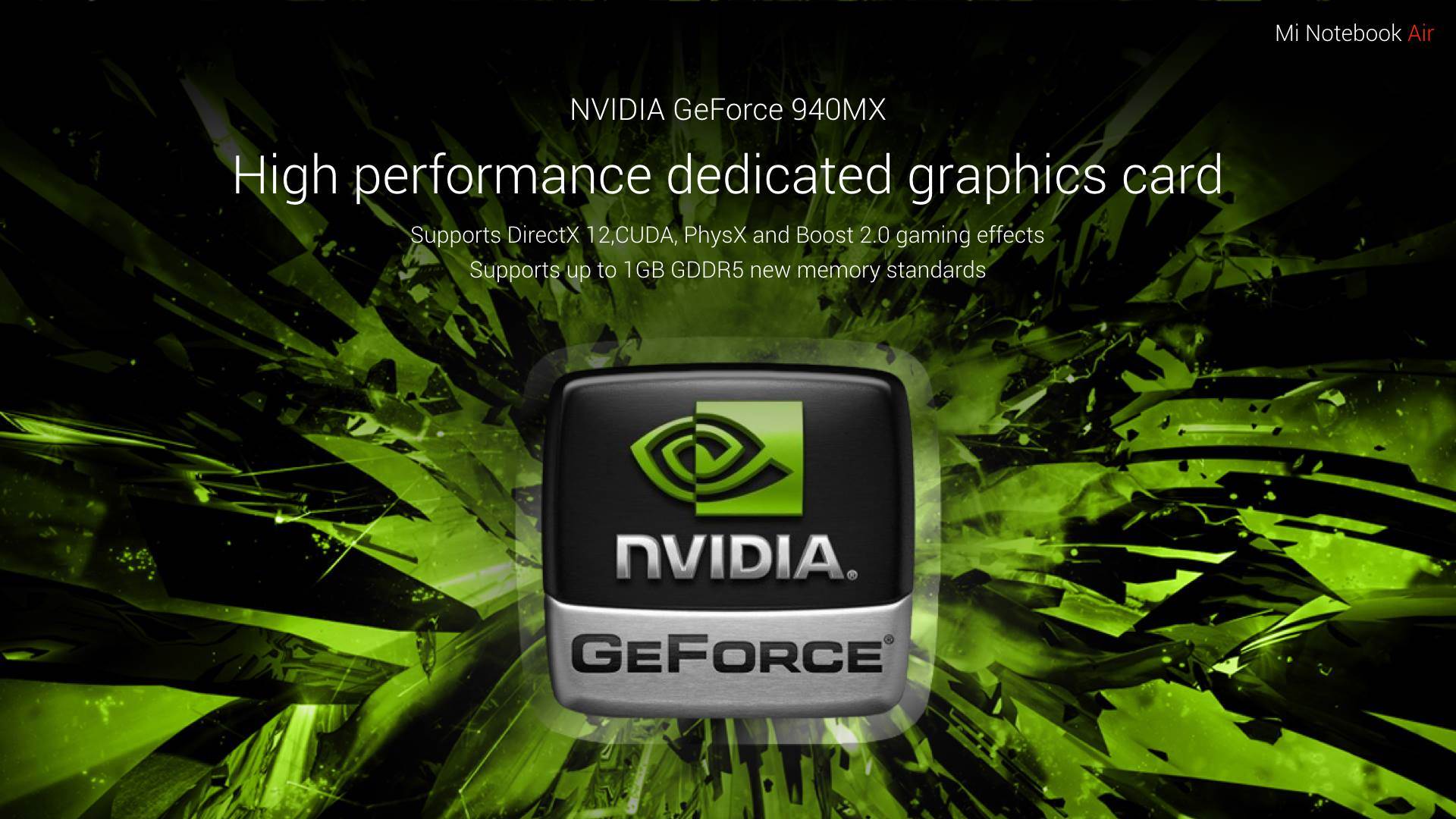 Modelul Mi Notebook Air de 13.3 inch va dispune de următoarele caracteristici: procesor Intel Core i5 la 2.7 GHz, 8 GB de memorie ram DDR4, spațiu de stocare de tip SSD de 256 GB, placă video nVidia GTX 940MX, o baterie ce îi poate asigură o autonomie de 9.5 ore, tehnologie fast charge prin se încărca 50% în numai 30 de minute și o greutate de 1.28 kg.