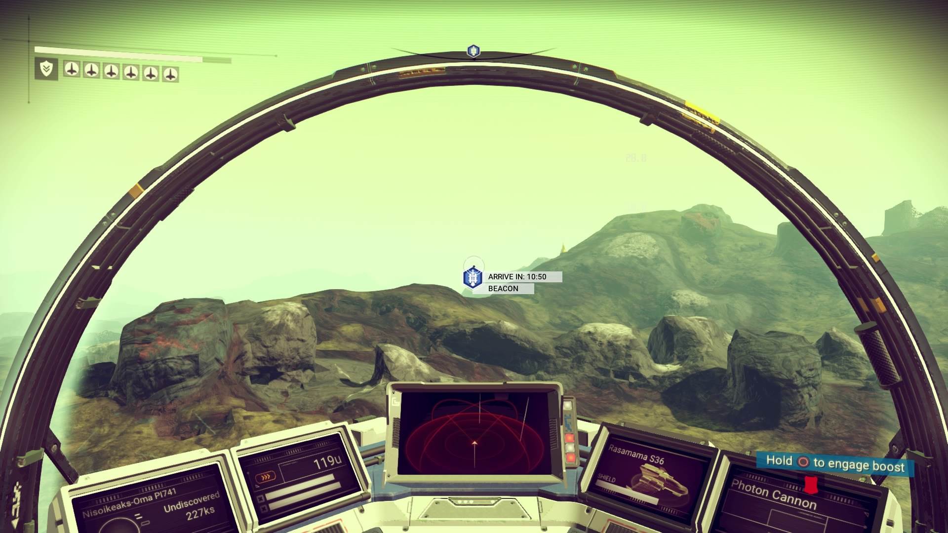 La polul opus se află nava. Cu aceasta jucătorul se poate deplasa atât în atmosfera planetei, cât și în spațiul interstelar. Probabil aici vine prima mea problemă cu jocul. Nava se controlează ușor. Foarte ușor. Nu îmi doresc ca No Man’s Sky să fie un simulator aviatic sau spațial, dar nava tinde să aibă pilot automat și să meargă în linie dreaptă. Luptele spațiale sunt și ele destul de prost gândite.