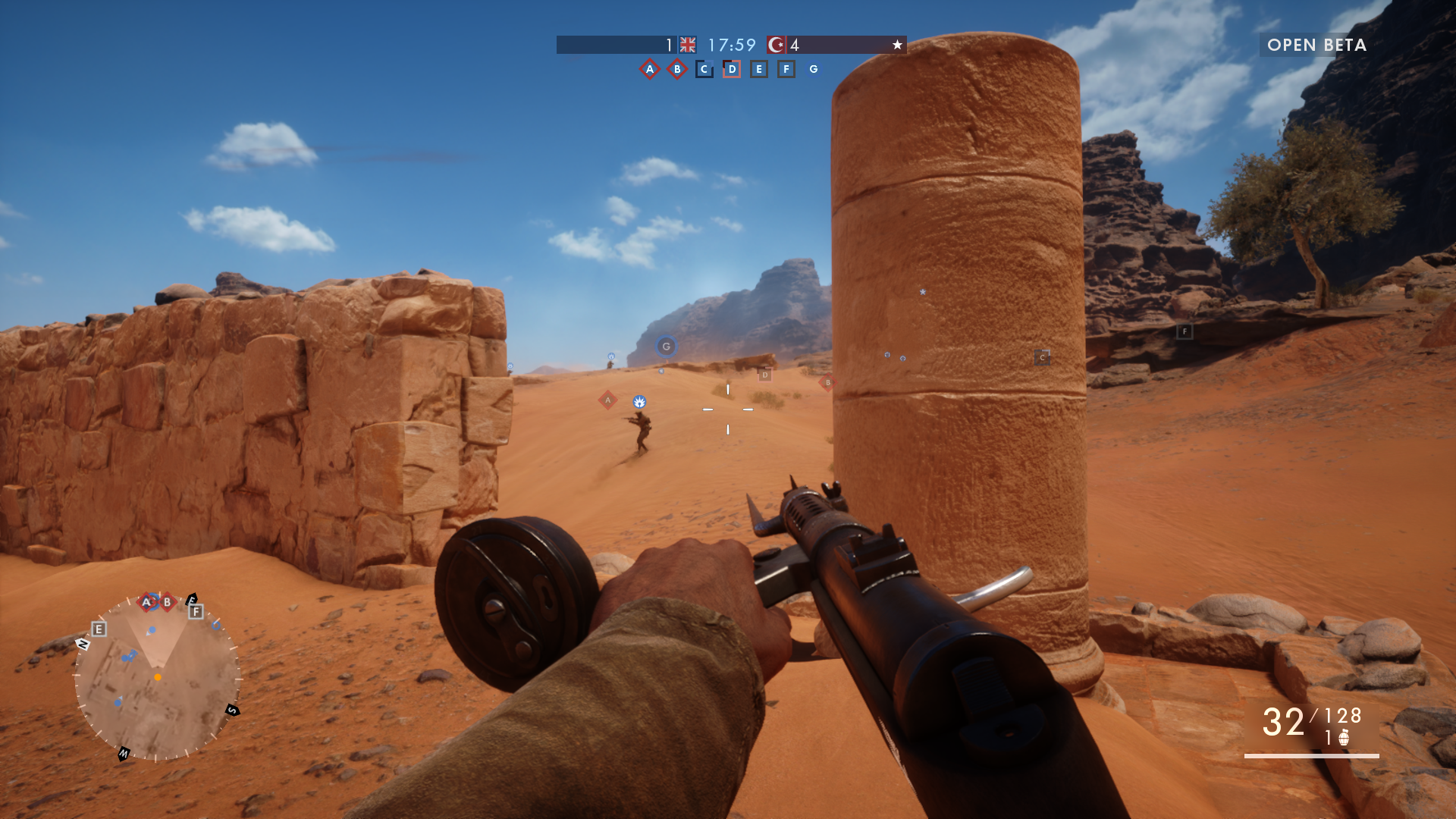 Dacă erați obișnuiți cu momente epice în care îți cad zgârie-nori în cap, BF1 nu are așa ceva. Și nici nu îi trebuie. Deșertul Sinai este un loc al naibii de arid, pare primejdios, enorm și are acea atmosferă specială care te face să realizezi că nu este un loc la nimereală și că tu nu faci parte din escadronul X și îndeplinești vreo misiune fictivă, ești acolo… faci parte dintr-un război mondial.