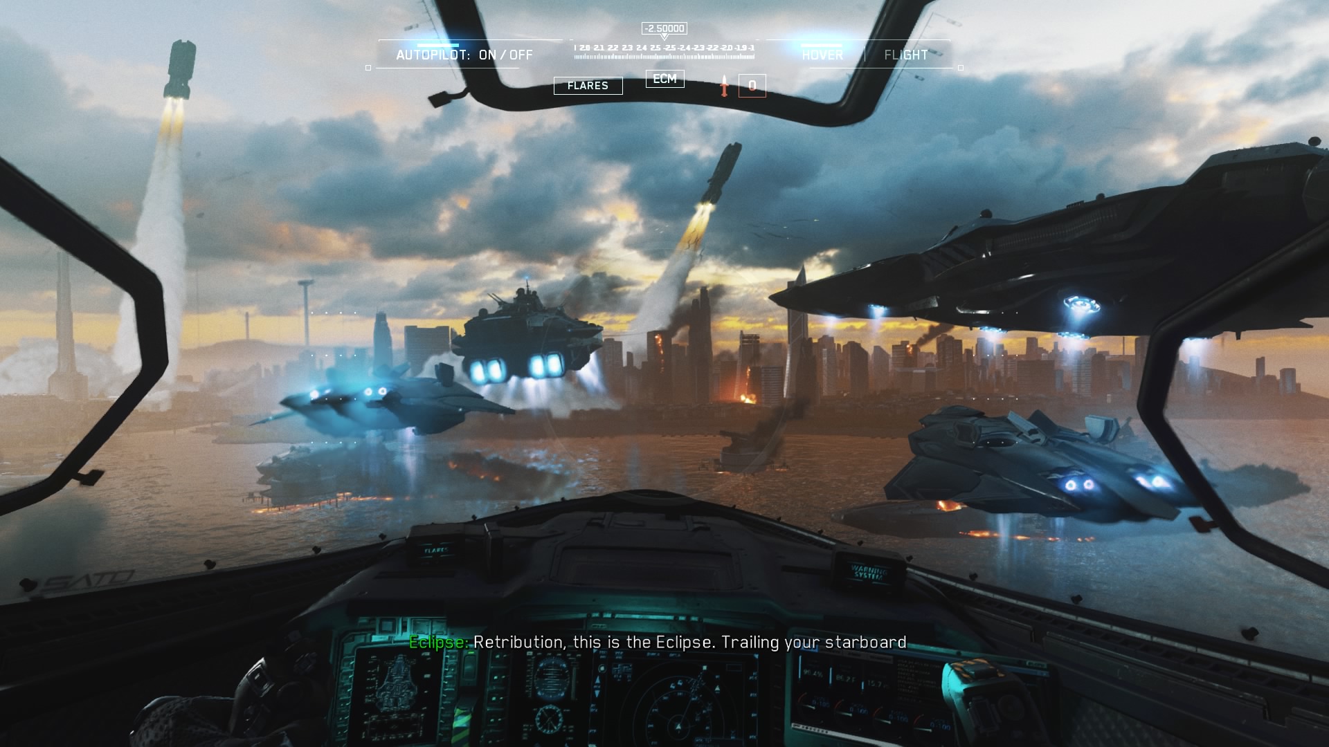 Aceste momente nu sunt singurele instanțe în care jucătorul se va afla în spațiu, noul COD aducând în lumină o nouă mecanică. Dacă până acum secvențele cu vehicule nu lăsau controlul total în mâinile jucătorului, secvențele de pilotaj din Infinite Warfare schimbă total acțiunea și dinamică unei misiuni. Jucătorul va pilota o nava spațială în mai toate misiunile, fie ele principale sau secundare. Controlul navei este simplist şi foarte uşor de înţeles, fiind destul de greu să îţi ratezi ţintă sau să te loveşti de diferite obiecte din spaţiu.