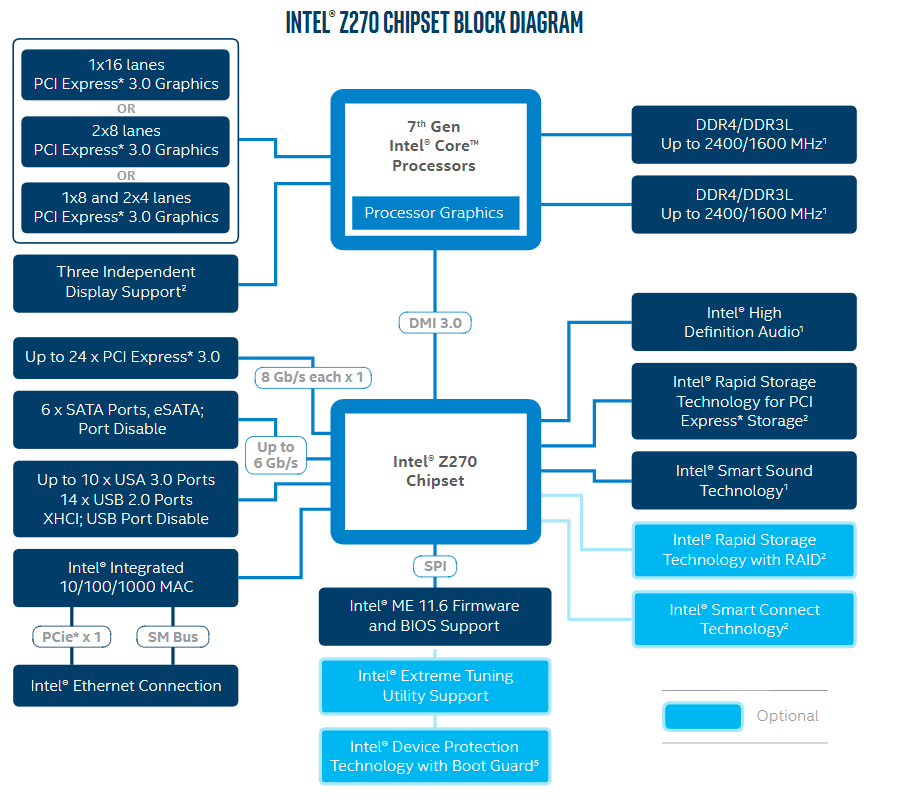 Concret, plăcile de bază ce au chipset Z270 permit overclock mulțumită posibilității de a controla multiplicatorul de pe procesoarele ce au terminația K. De asemenea, pe Z270 pot fi create configurații multi-GPU, adică SLI și Crossfire.