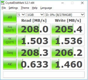 Hard disk-urile şi-au pierdut spectaculozitatea de mult timp. În ziua de astăzi le vedem ca pe nişte dispozitive încete ce oferă foarte mult spaţiu la un preţ redus. Aproape că nici nu mai contează viteza, atât timp cât nu e deranjant de mică. Modelul instalat în Omen X-ul nostru a oferit viteze bune, de peste 200 MB/s, deci se va descurca foarte bine în lucrul cu fişiere mari.
