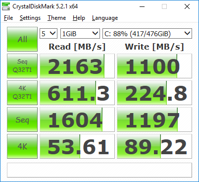 Cum putem interpreta rezultatele? SSD-ul SM951 este unul dintre primele modele NVMe ce au apărut pe piaţă şi se ţine foarte bine chiar şi după acest an şi jumătate de la lansare. Atât vitezele de scriere/citire cât şi timpii de acces sunt la un nivel foarte înalt, cu o viteză de citire secvenţială ce a atins 2163 MB/s (mega bytes, adică octeţi, nu biţi).