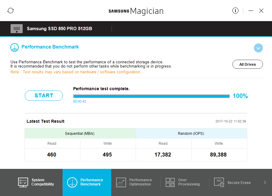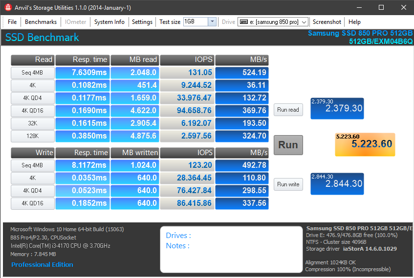 Am trecut acest 850 PRO prin diferite teste pentru a vedea, din multiple surse, ce performanță ne oferă în această gamă de preț, iar rezultatele au fost aproape de valorile pe care Samsung le includ în descrierea produsului.