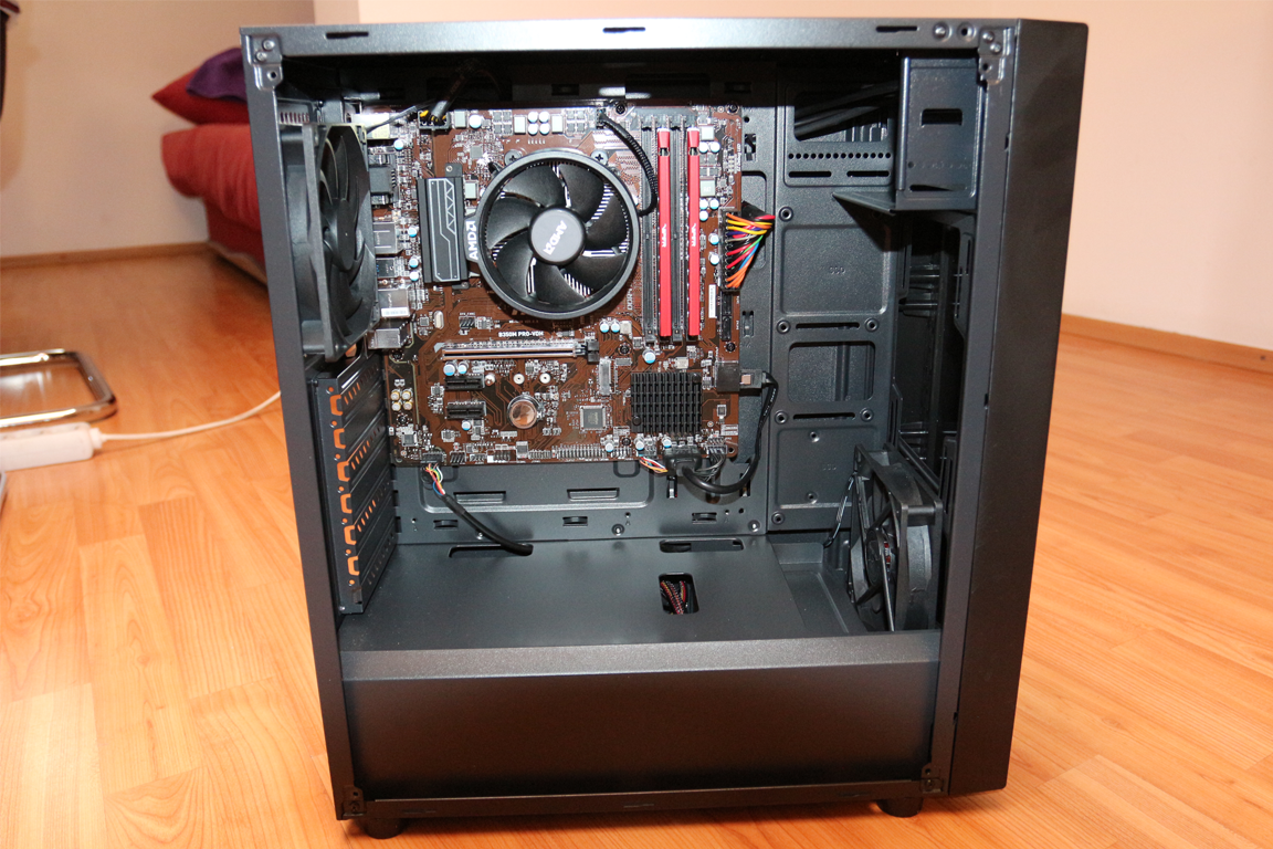 Voi începe prin a mă lega de dotările lui PC Garage Corvus. Ideea care a stat la baza designului acestui PC a fost livrarea unui produs capabil de a rula jocuri decent, la un preț mic, iar asta nu ar fi fost posibil fără ajutorul procesorului de tip APU, AMD Ryzen 3 2200G. Acest procesor quad-core din noua serie Ryzen, include un chip grafic integrat foarte puternic, pe numele de Radeon Vega 8. Asta înseamnă că PC Garage Corvus nu dispune de o placă video dedicată, însă este capabil să ruleze majoritatea titlurilor. Alături de APU-ul mai sus amintit, sistemul mai are 8GB de memorie RAM DDR4, la frecvență de 2400Mhz, un hard disk de 1TB, toate acestea fiind montate pe o placă de bază MSI B350M PRO-VDH.