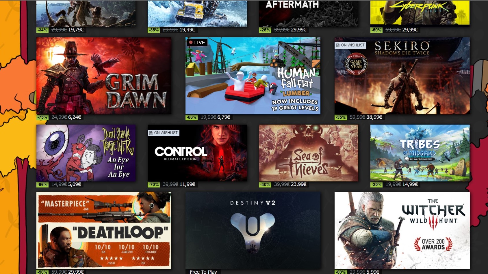 Puteți accesați pagină principală de Steam pentru a vă clăti ochii cu — vorba lui Bo Burnham — „a little bit of everything, all of the time”. Valve a tăiat din nou atât de multe prețuri încât promovează doar câteva dintre ele, așteaptând cu poftă ca bieții utilizatori să muște momeala și să-și pună încrederea în algoritm pentru a se scufunda într-o spirală a recomandărilor și reducerilor.