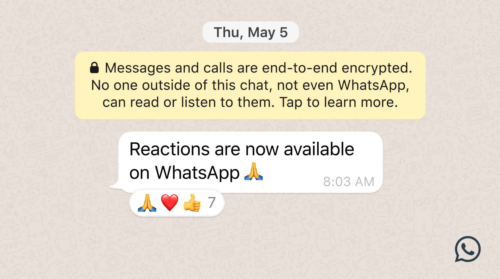 Update-ul face parte din noua strategie WhatsApp, care se concentrează mai mult pe comunități: “dorim să oferim posibilitatea organizațiilor, companiilor și altor grupuri unite să comunice în siguranță și să îndeplinească sarcini pe WhatsApp.” În stadiul inițial al update-ului vor fi disponibile 6 tipuri de reacții, la care se vor adăuga și altele pe parcurs, conform declarațiilor lui Zuckerberg de pe Facebook.
