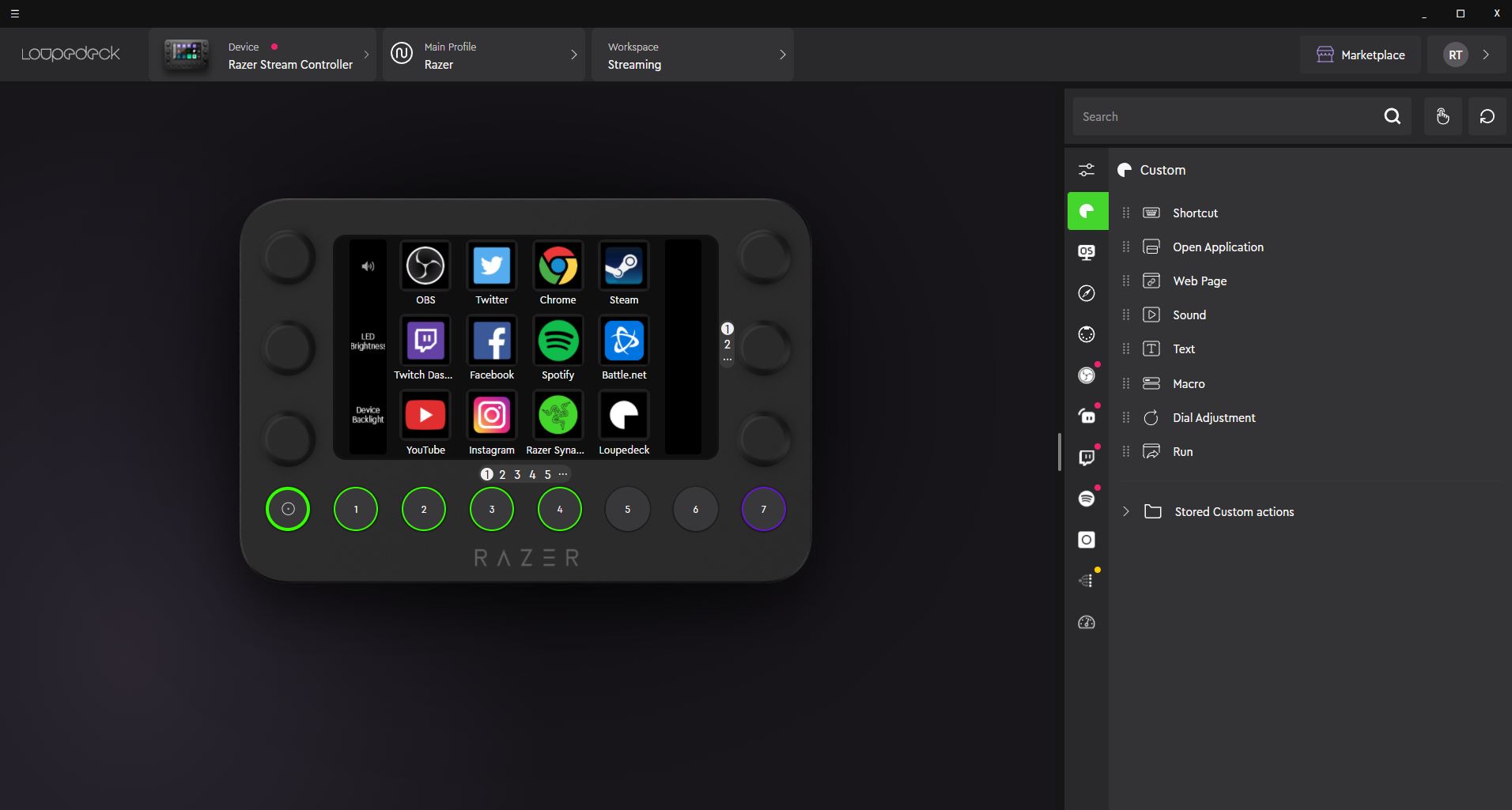 Razer Stream Controller dispune de o mulțime de butoane, toate personalizabile, ceea ce îl face foarte interesant pentru o mulțime de categorii de utilizatori: în centru se află 12 ”butoane” virtuale (e un touchscreen împărțit în 12 zone), în stânga și în dreapta ecranului se află 6 rotițe digitale ce au și funcție de buton atunci când sunt apăsate, iar în partea de jos se află 8 butoane numerotate, ale căror funcții și culori pot fi personalizate după bunul plac.